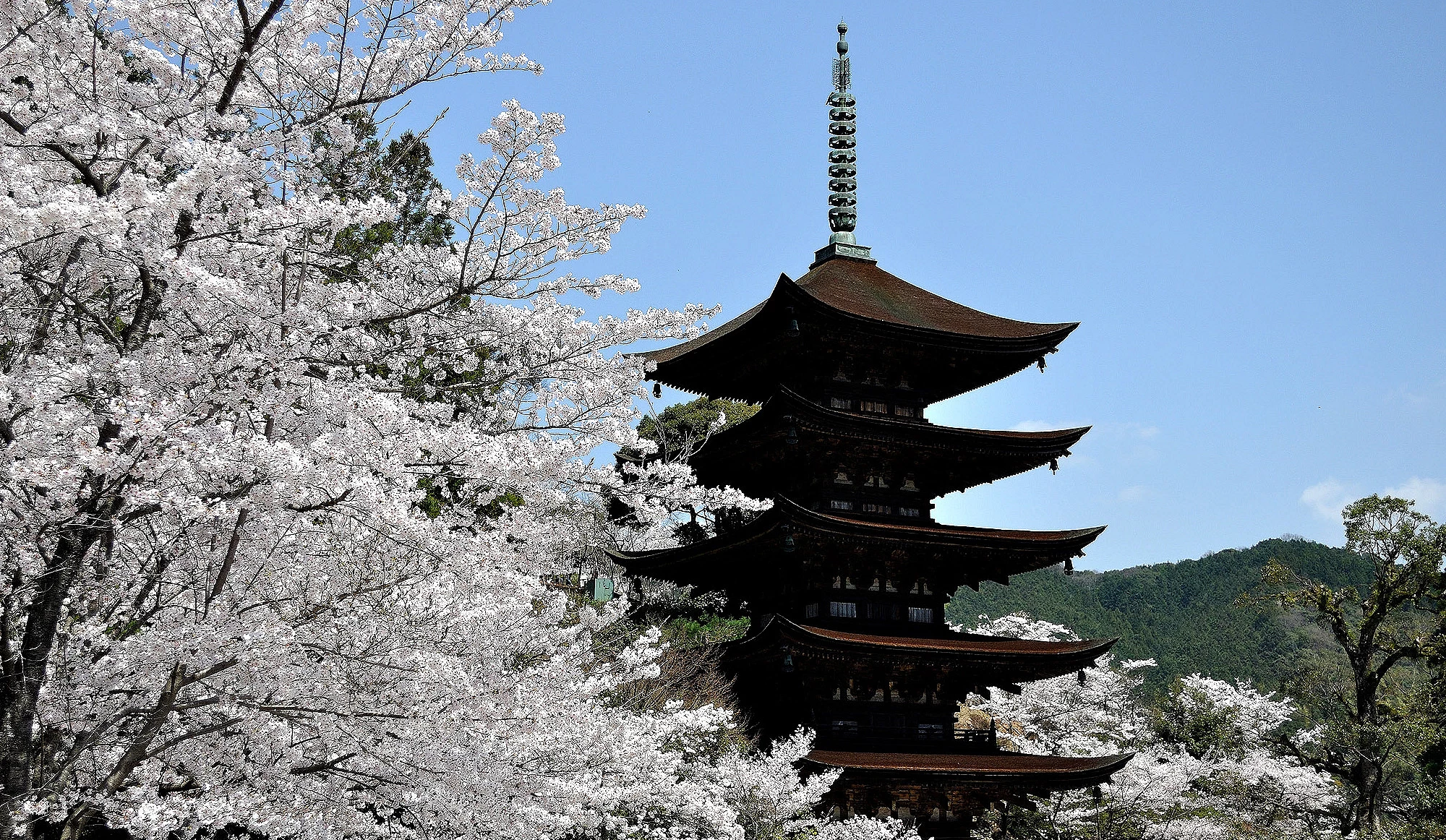 ① 日本三名塔之一,五重塔与樱花交织的经典画面