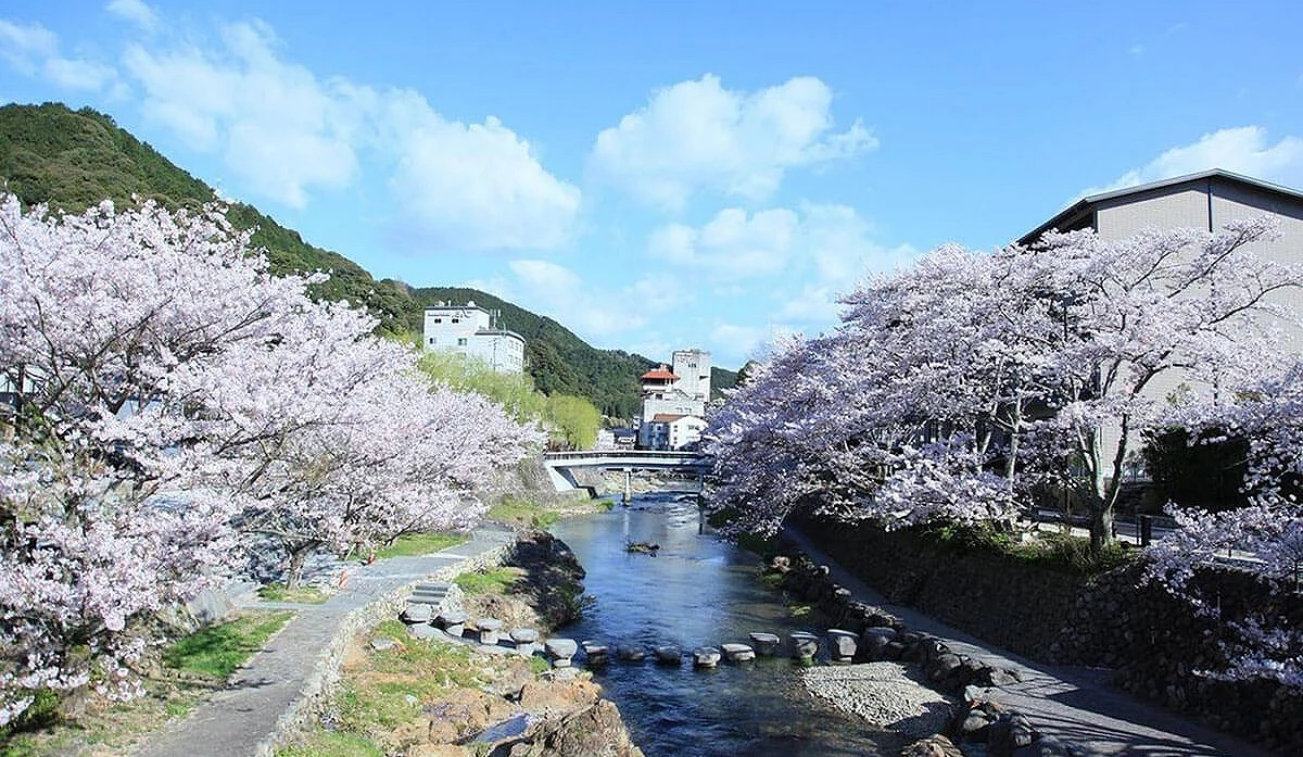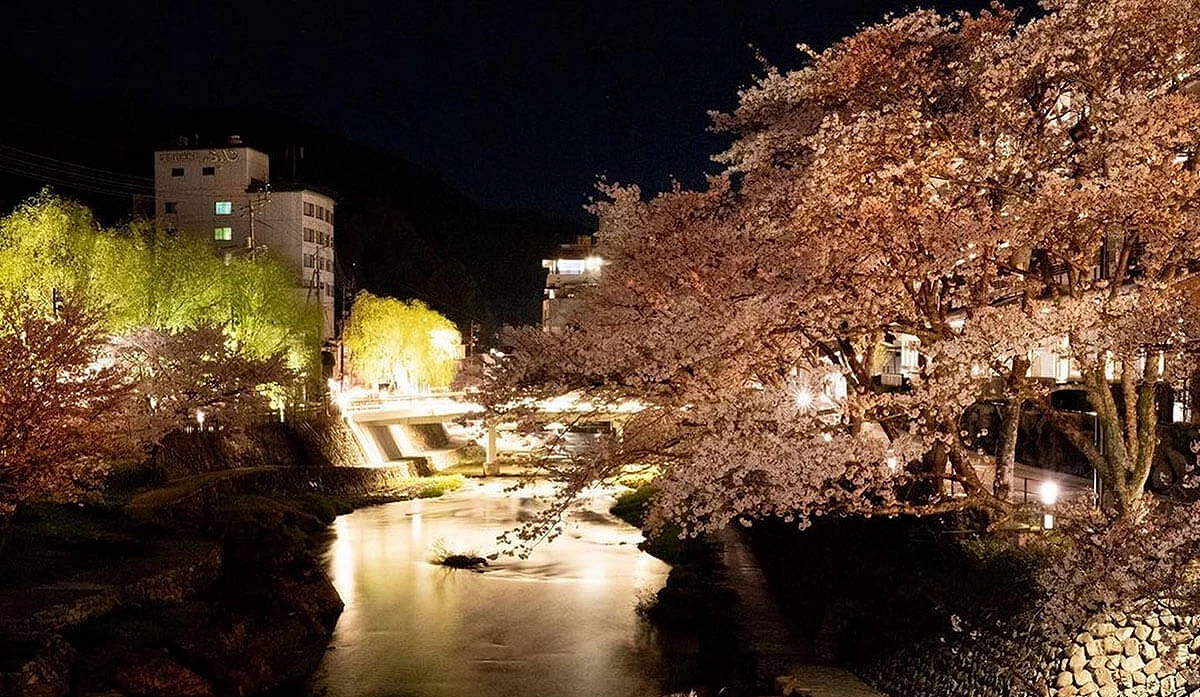 拥有约600年历史的「长门汤本温泉」是近年备受瞩目的日本温泉秘境之一,这处山口县最古老的温泉地曾一度沉寂,直到2017年启动地方创生计画,重新整备河岸景观、打造木栈道,并引进风格独具的咖啡厅与旅宿后,为温泉街注入崭新生命,成功于2023年跻身「日本温泉百选」前30名。春季时,音信川两岸樱花陆续盛开,粉嫩花影映衬溪流与温泉街景,营造出宁静温柔的赏樱氛围。白天可在温泉街散策赏花,夜晚点灯后则可享受沉静优雅的夜樱景致,再搭配泡汤行程,更能彻底放松身心。