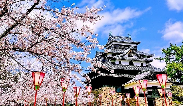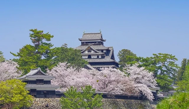 ① 日本现存天守之一,樱花环绕黑色城郭美景