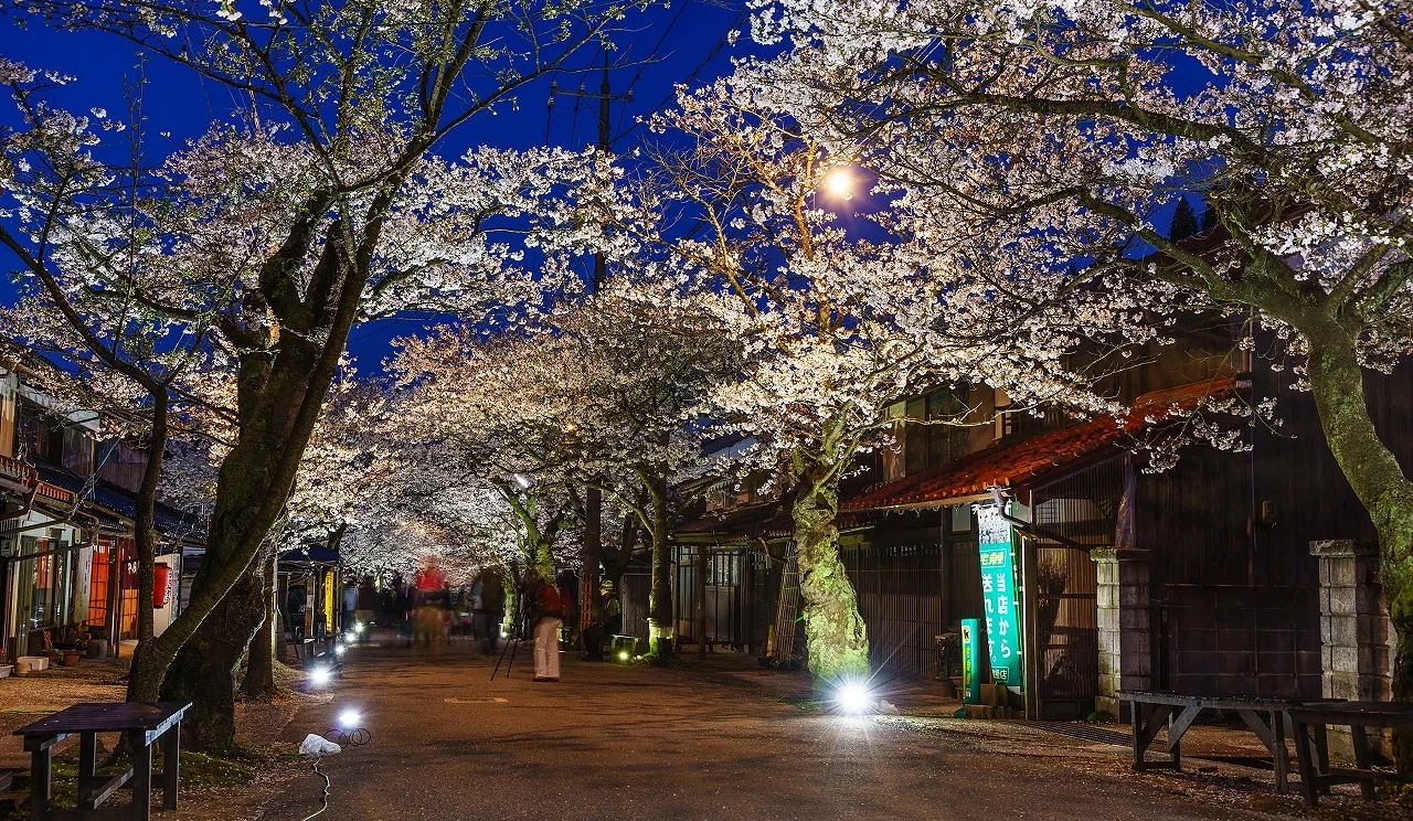 位于松江市的「玉造温泉」自古以来便以「美肌之汤」闻名,每到春天更会化身为岛根超人气的赏樱胜地。樱花季期间,沿着玉汤川两岸约400棵的染井吉野樱盛开,形成梦幻的樱花隧道,同时温泉街也会举办「樱花祭」,活动内容包含夜樱点灯、亲子同乐的夜市摊位,以及结合在地特色的「岛根地酒祭」等,整个小镇洋溢着热闹氛围。白天赏花、夜晚散策,再搭配泡汤的放松行程,就是一趟好完美的春季之旅!