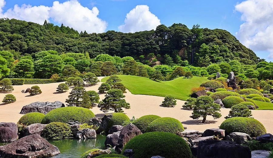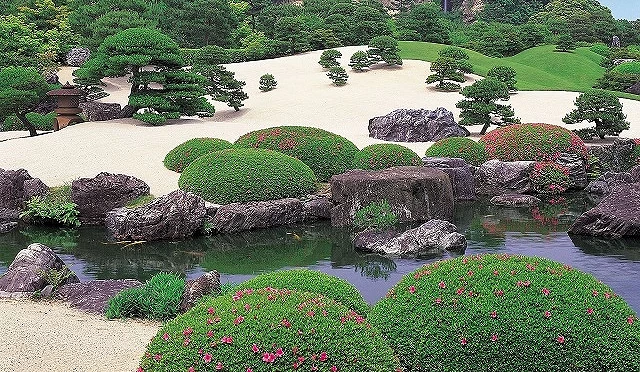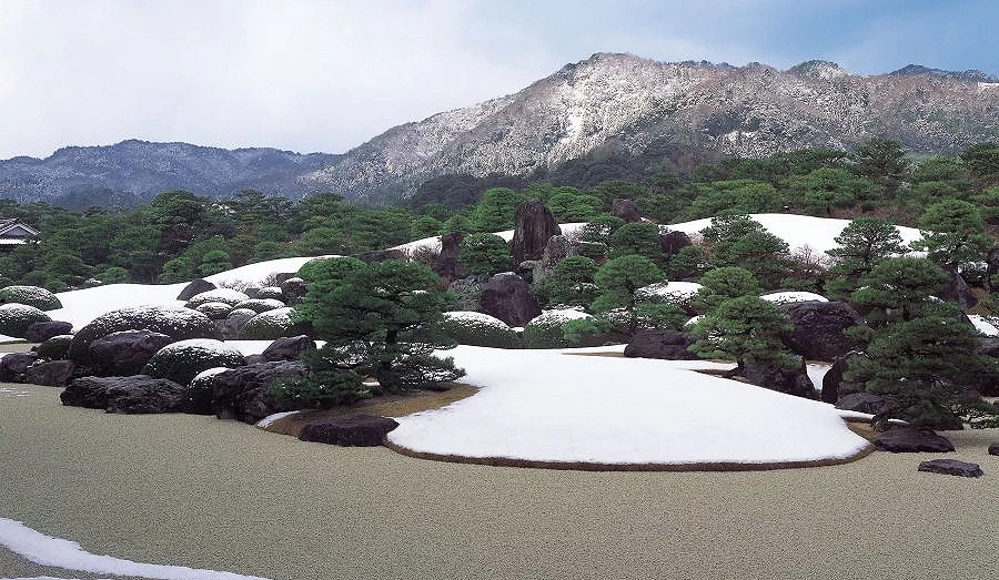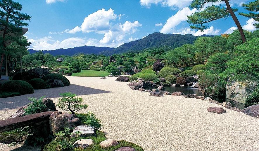 「足立美术馆」位于日本岛根县安来市,以其连续多年荣获「日本第一庭园」美誉的日式庭园闻名。庭园透过精巧的窗户设计,将四季景色融入室内,如同一幅幅「活」的画作。同时,馆内收藏大量日本近代美术作品,包括日本画大师横山大观的逾百件珍品,并设有专门展示北大路鲁山人作品的鲁山人馆及展示当代日本画的新馆。成功地将艺术与自然融为一体,是日本极具代表性的艺术与庭园结合的景点。并且连续超过20年荣获美国专门报导日本园林的杂志评为「日本最美庭园」。